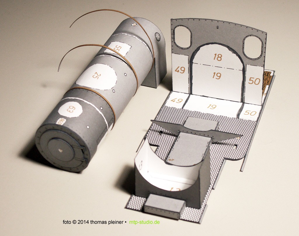 Bei diesem Modellbogen wurde vergessen, IRGENDETWAS zum Vorbild zu sagen/schreiben. Es fehlt leider jegliche Information. Unter der Lupe lässt sich den aufgedruckten Schildern auf den Wasser(?)kästen so etwas wie »1901« oder »1911« (?) entnehmen … und eine fünfstellige (unleserliche) Nummer.