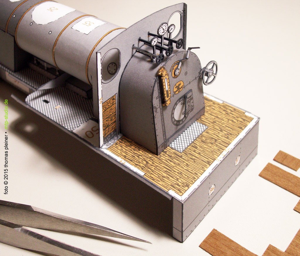 Persönlich ist das nicht das, was ich bevorzuge. Für mich SOLL ein Kartonmodell IMMER als Kartonmodell erkennbar bleiben – stehts bemüht um Perfektion – aber niemals das Material und die damit verbundenen konstruktiven Eigenheiten leugnen. Modellbauer, die absolut maßstabsgetreuen Funktionsmodellbau in Museumsqualität zum Ziel haben, sind bei »Karton« sowieso nicht ganz auf der richtigen »Baustelle«. Aber das ist natürlich nur meine persönliche Meinung …