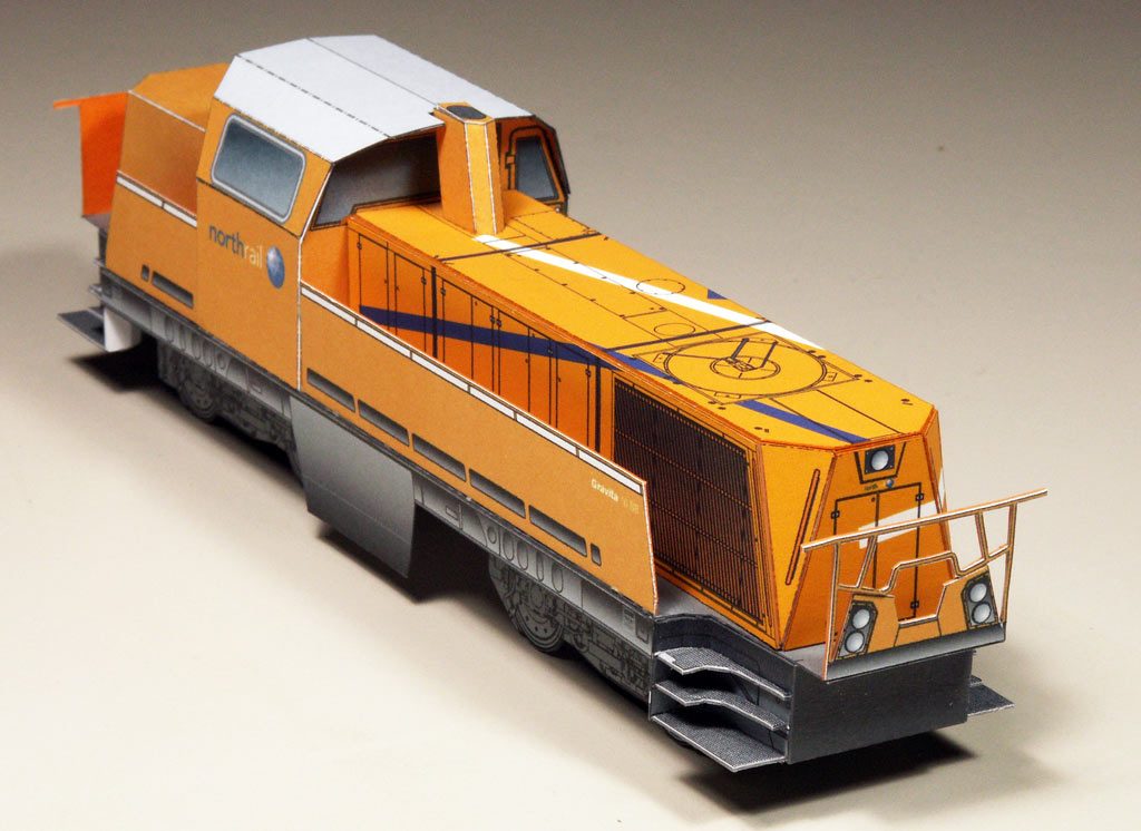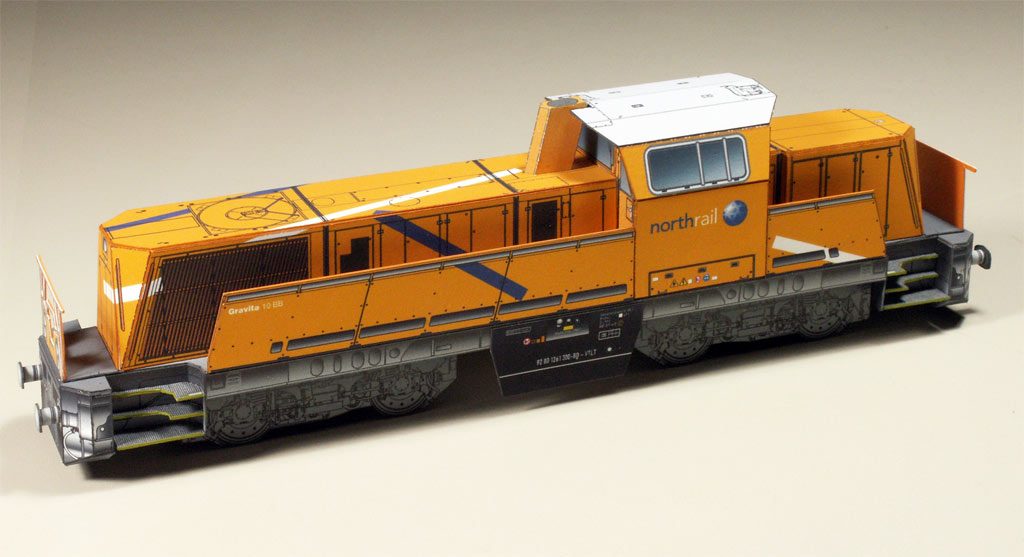 Eine interessante Entwicklungsarbeit war im Jahe 2010 diese Lokomotive im Maßstab 1:60. Natürlich galt es hier – angesichts diverser Kriterien – die Detaillierung s e h r zu begrenzen. Vor allem in 1:60 – Am Ende entstand aber ein stimmiges Konzept. Und als Give-away-Bastelbogen für eine Messe allemal das richtige …