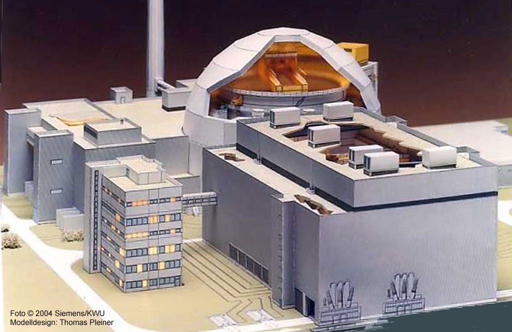 …. nachdem das Modell des DWR 1300 MW schon so »alt« ist, dass es auf keiner mir bekannten Plattform mit einem »Baubericht« gewürdigt worden wäre, erlaube ich mir, hier ein paar Fotos die anläßlich der damaligen Präsentation bei Siemens KWU in Erlangen gemacht wurden, »in den Ring zu werfen« …