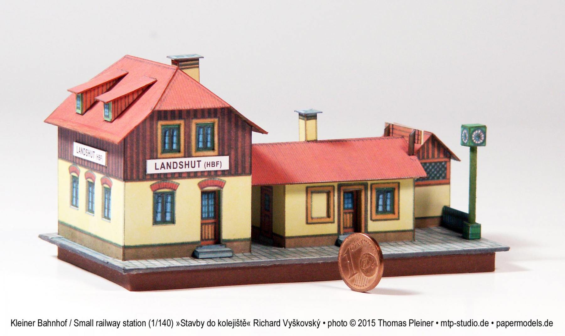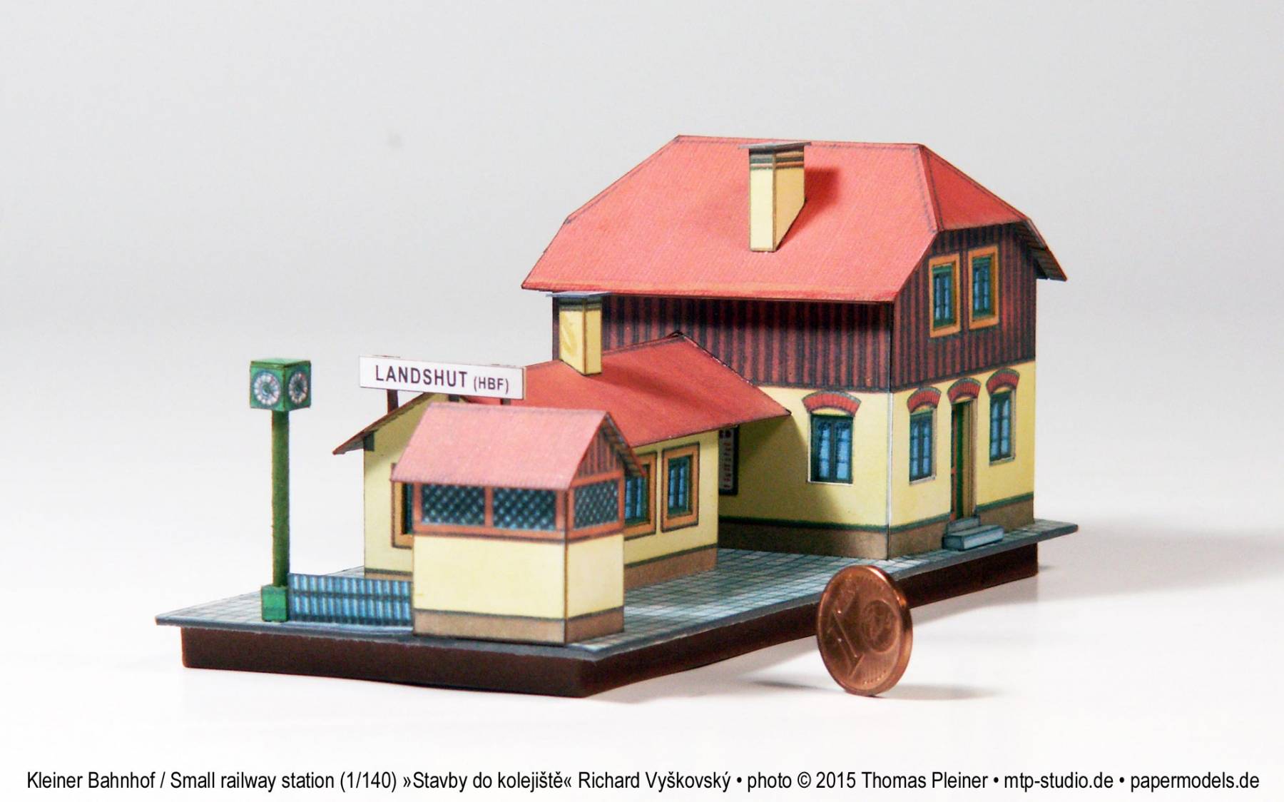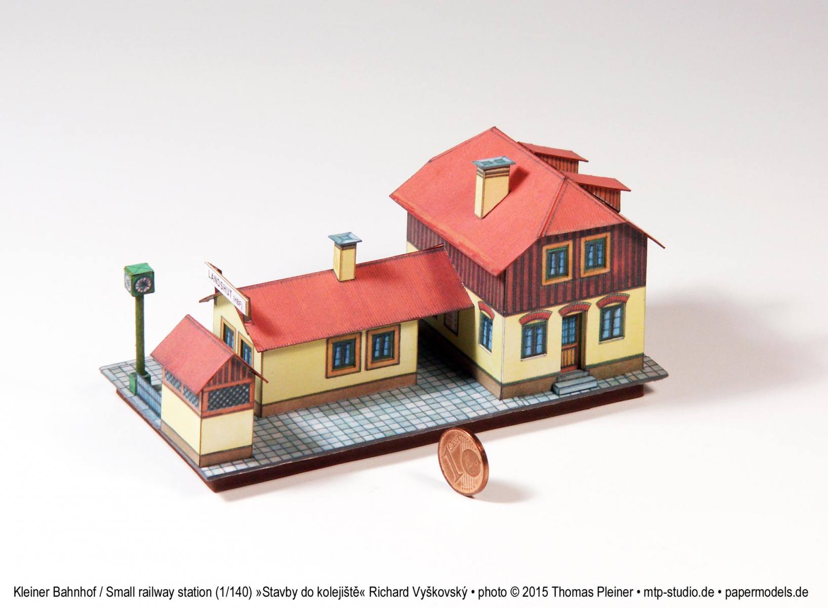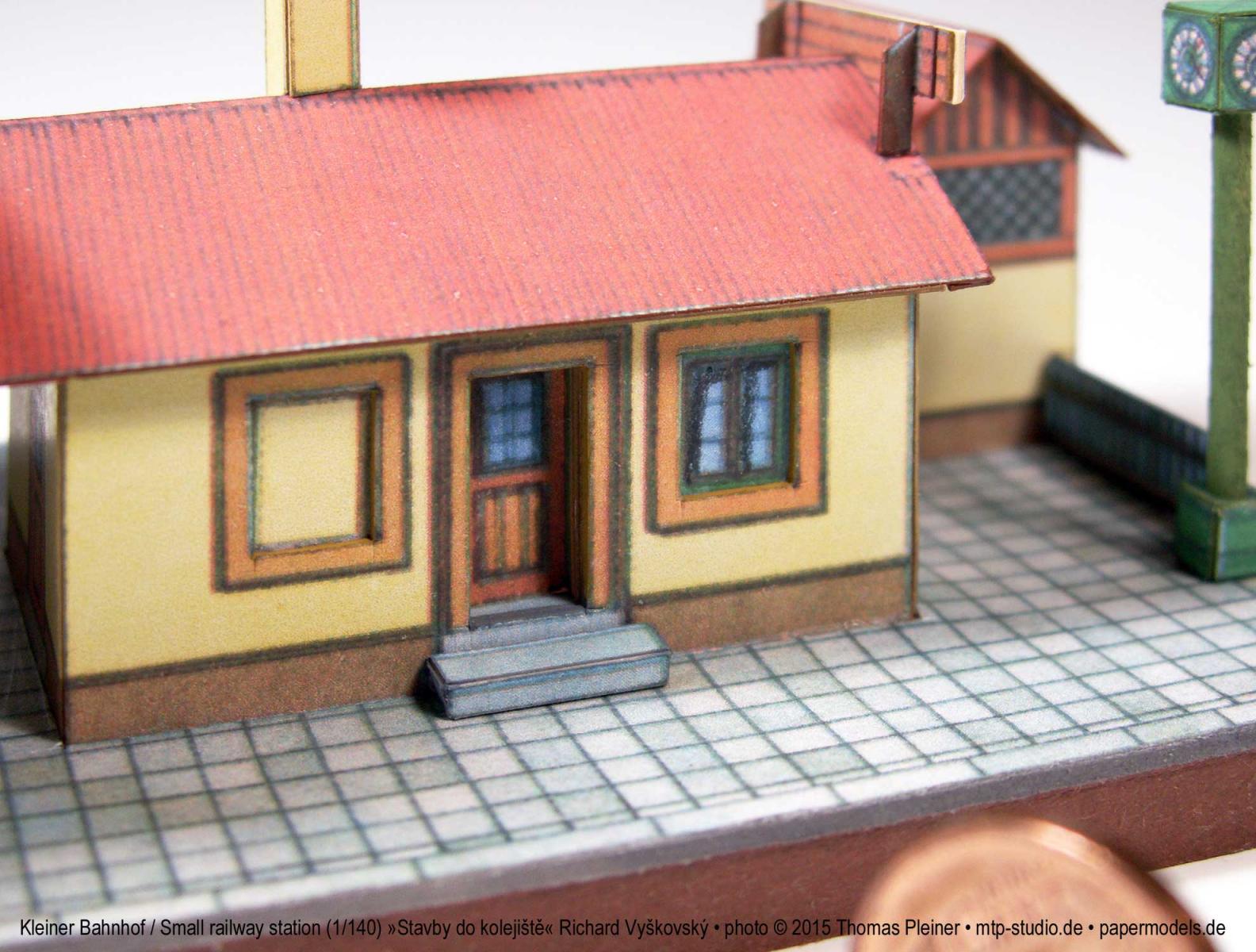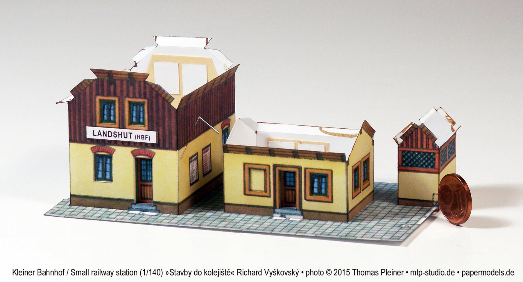 Eine Zusammenstellung von sieben Eisenbahngebäuden von Richard Vyškovský wurde in dieser Form erstmals 1990 von ALBATROS in Prag veröffentlicht. Es gab meines Wissens nach Vor-Veröffentlichungen in a-b-c. Aus dieser Zusammenstellung wurde der »Kleine Bahnhof« zusammengebaut.Bedauerlicherweise zeigt das Exemplar von 1990 wenig erfreulichge Passerdifferenzen, die nicht zu eliminieren waren. Die Wiederöffentlichung von ERKOtyp aus 2000 zeigt dagegen einen brillanten, hochqualitativen Druck …