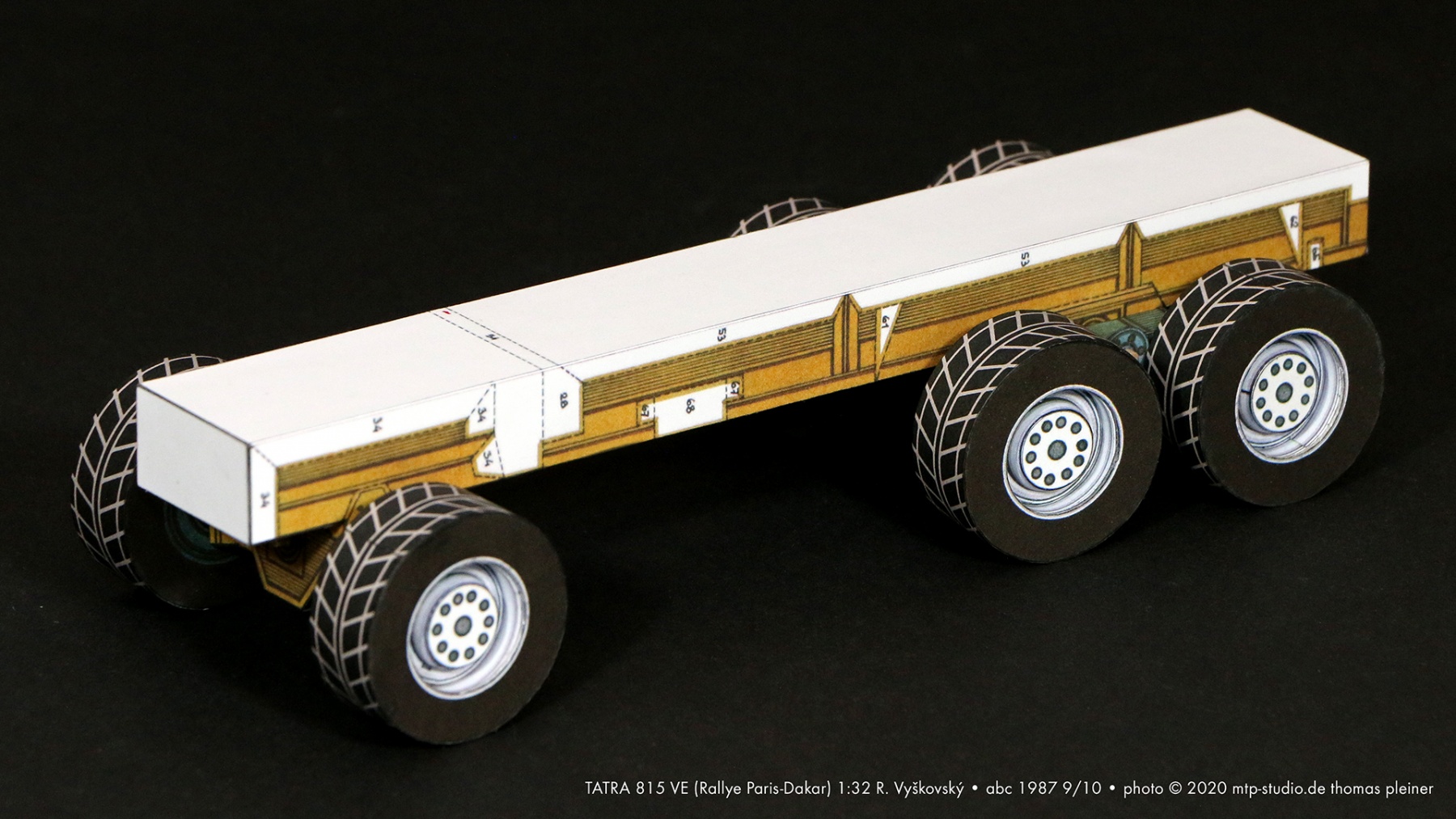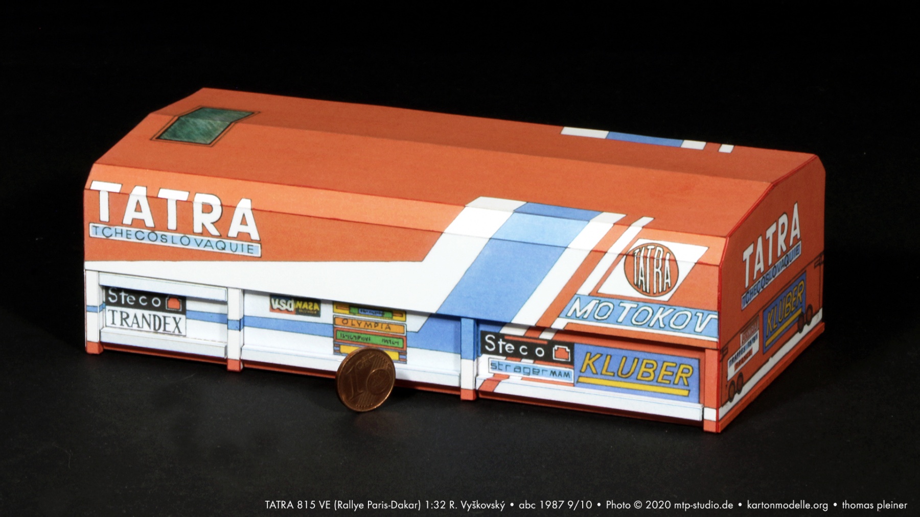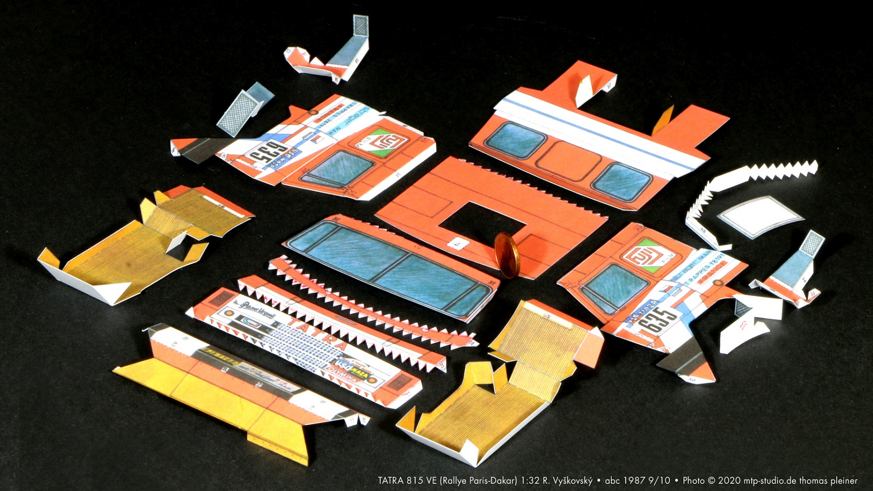 Das Modell erschien im Rahmen des „abc“-Magazins in den Ausgaben 9 und 10 des Jahres 1987 – sozusagen am Vorabend des Falls des eisernen Vorhangs. Im Jahre 2007 wieder veröffentlicht, findet sich dieses Modell mit 3,5 Bogen in der Veröffentlichung »50 Modelle aus a-b-c«. Ein nettes Fahrzeug in der typischen Vyškovsky-Machart (und Teiledichte) … das Design ist zwar 33 Jahre alt – entspricht aber ganz offensichtlich den Ansprüchen der Leser mit eher fortgeschrittenen Kenntnissen im Kartonmodellbau. Im Prinzip einfach aufgebaut, aber manche Details sind dann „nicht ohne!“