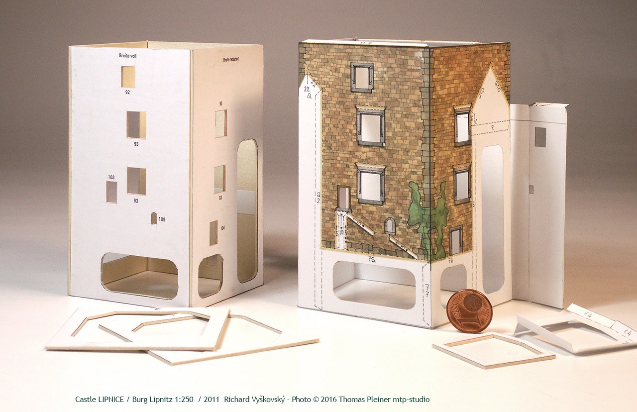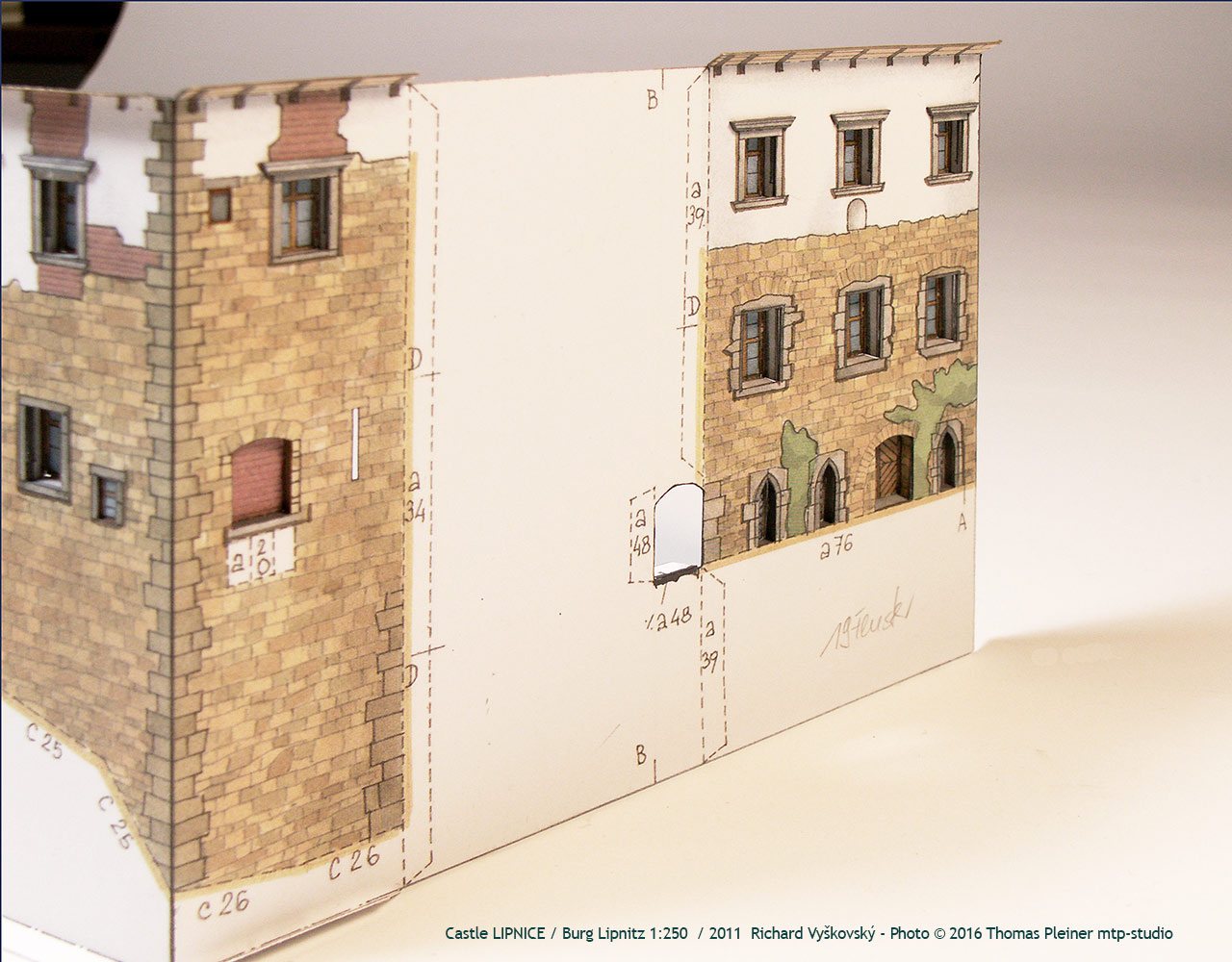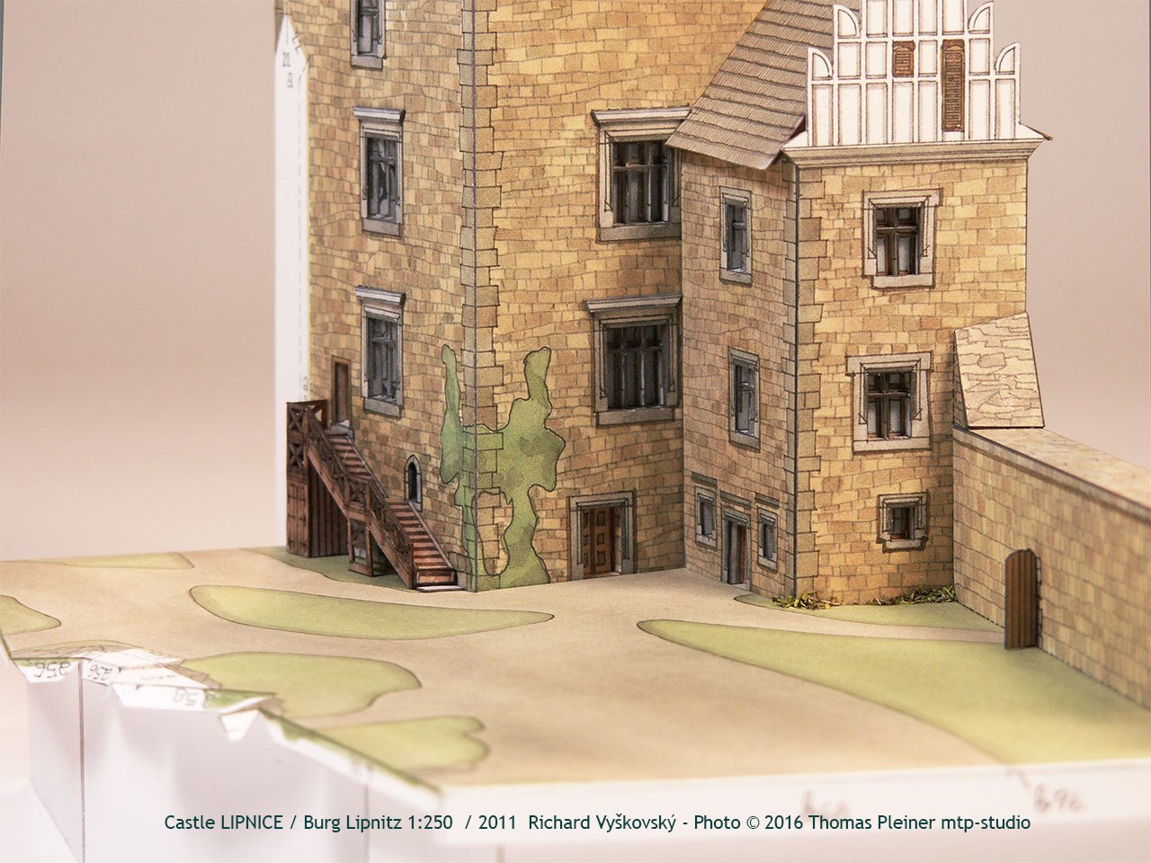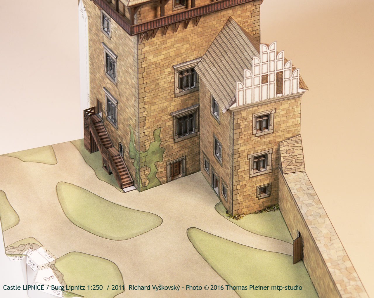 Als eines der äußerst bemerkenswerten Burgenmodelle von Richard Vyškovský darf »LIPNITZ« gelten. Strich und Binnenzeichnung kennzeichnen (auch) dieses Modell als eines der Spätwerke des tschechischen Gestalters & Architekten … was sich hier besonders in der angenehmen und realitätsnahen Farbgebung zeigt.