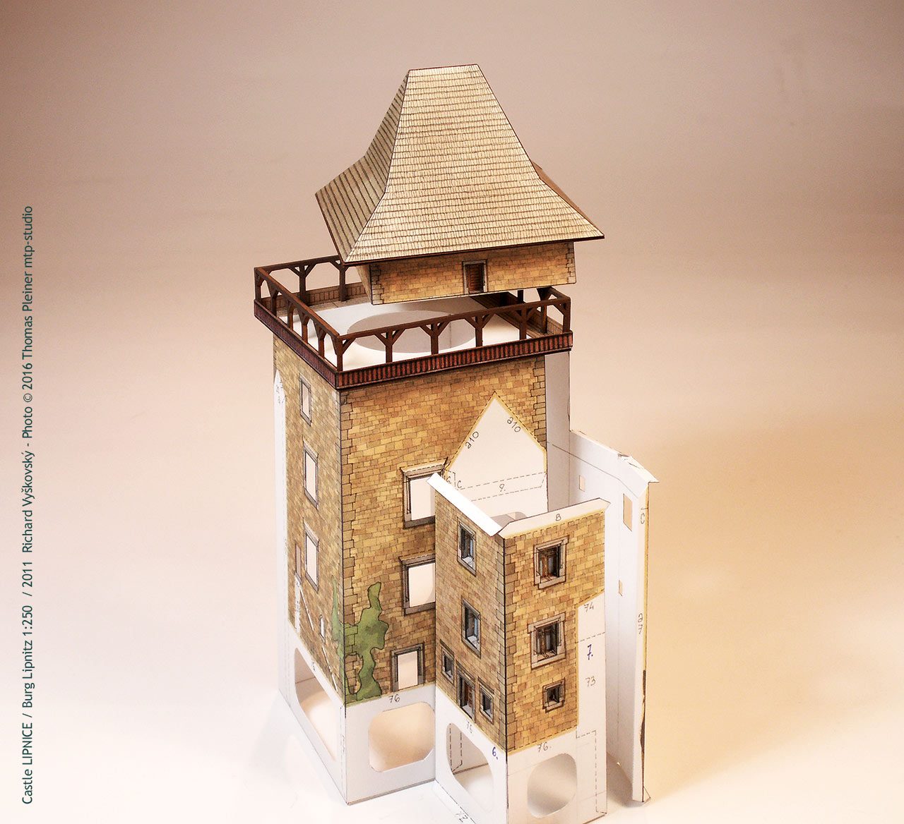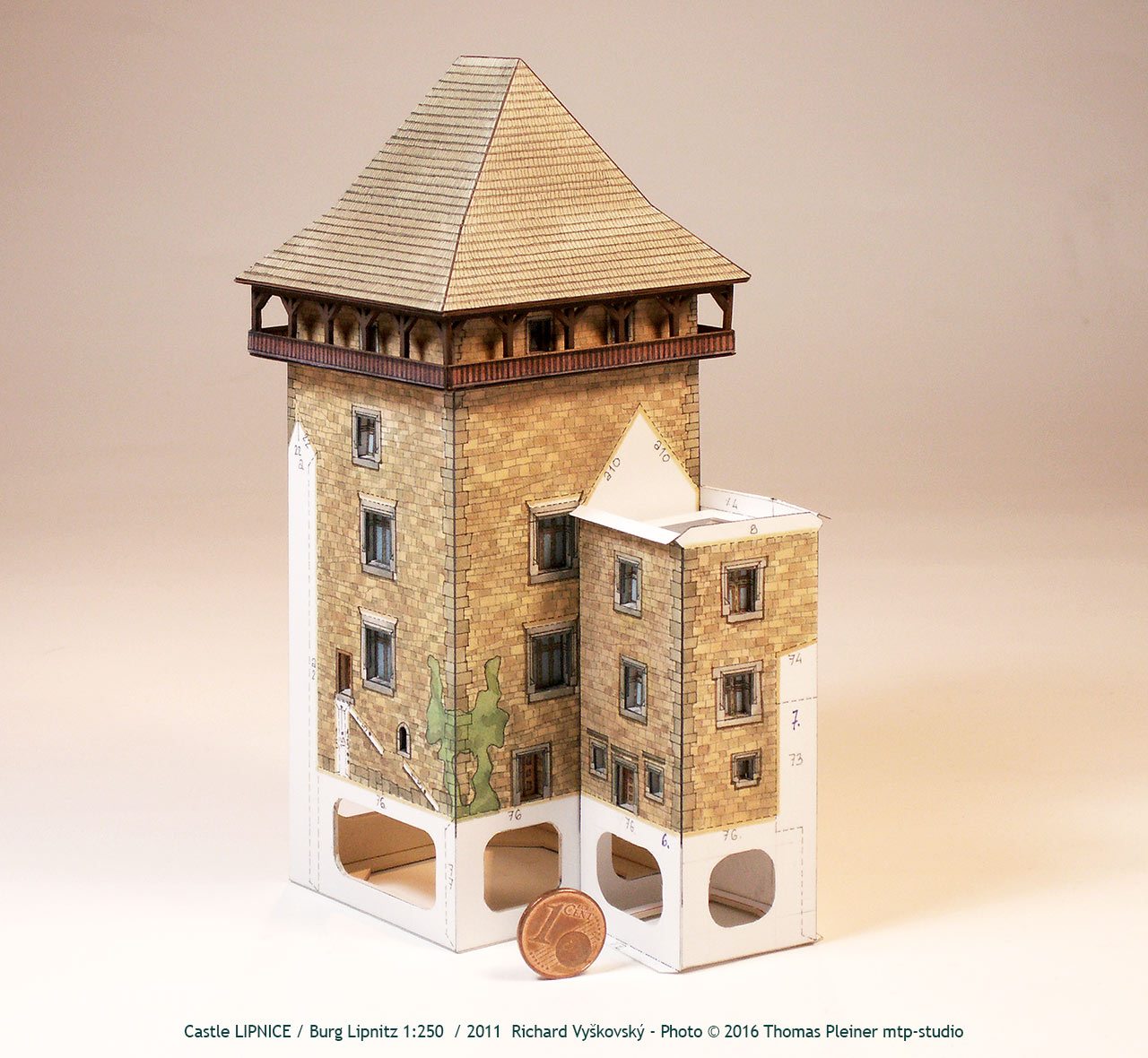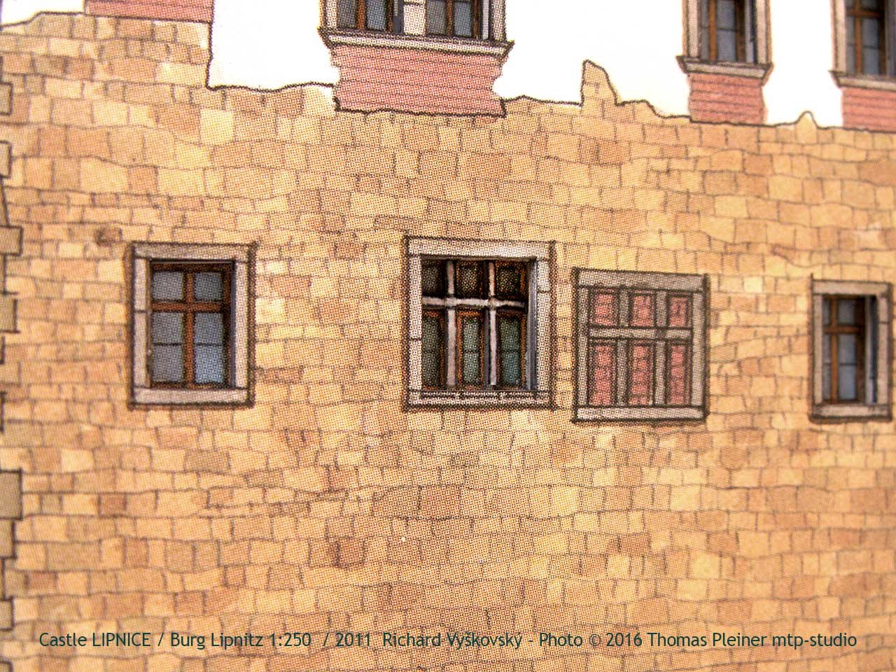 Als eines der äußerst bemerkenswerten Burgenmodelle von Richard Vyškovský darf »LIPNITZ« gelten. Strich und Binnenzeichnung kennzeichnen (auch) dieses Modell als eines der Spätwerke des tschechischen Gestalters & Architekten … was sich hier besonders in der angenehmen und realitätsnahen Farbgebung zeigt.