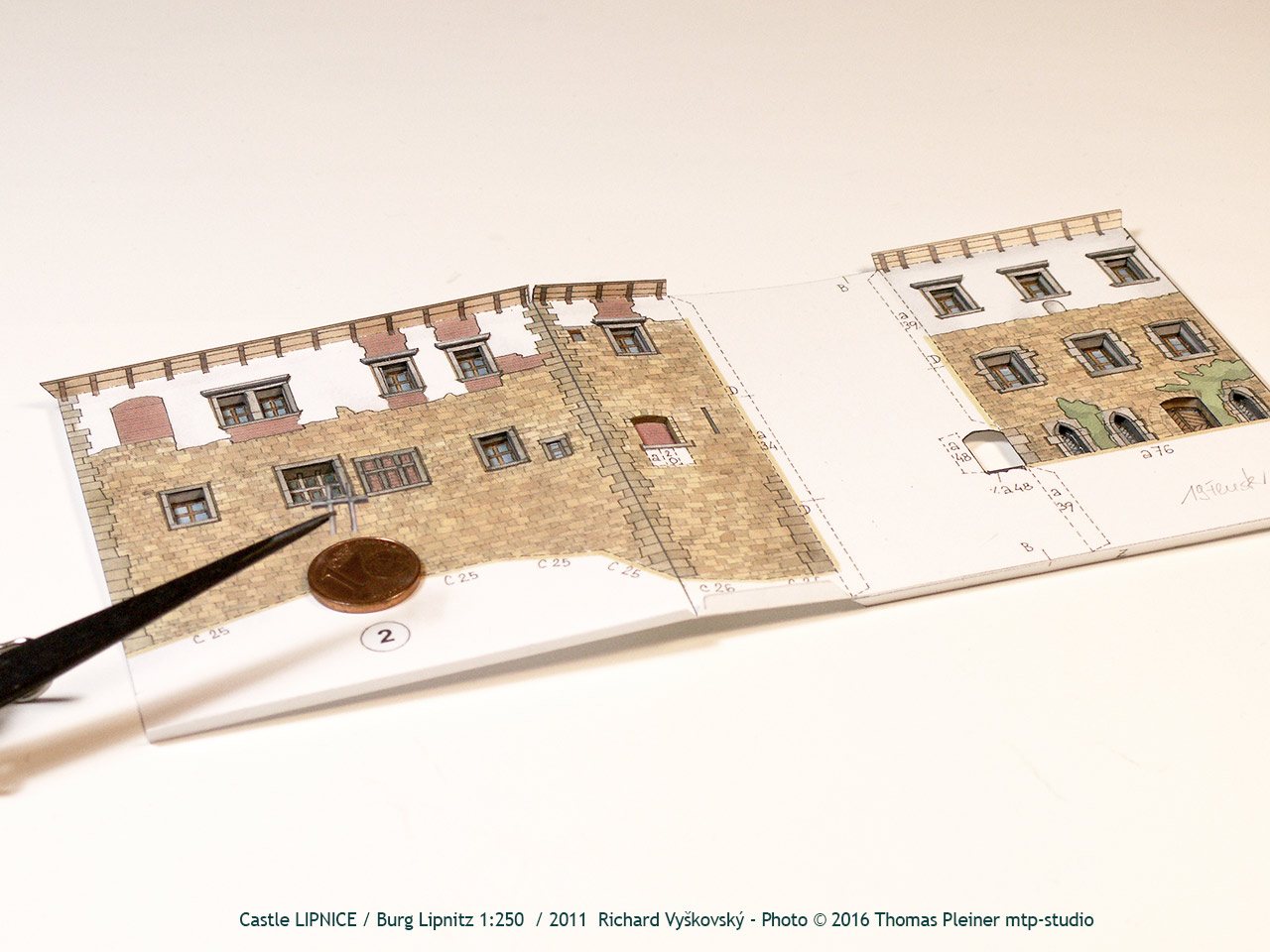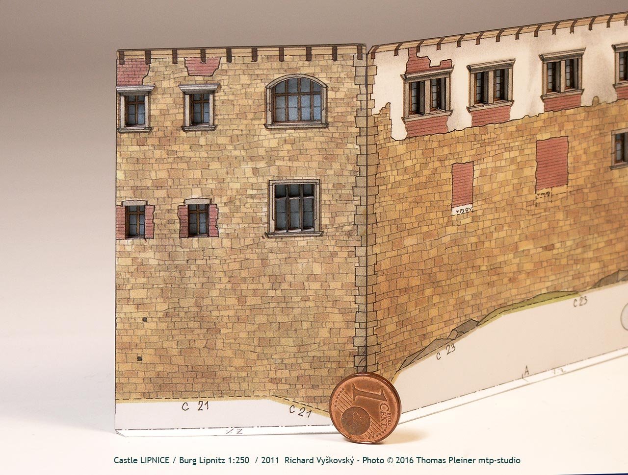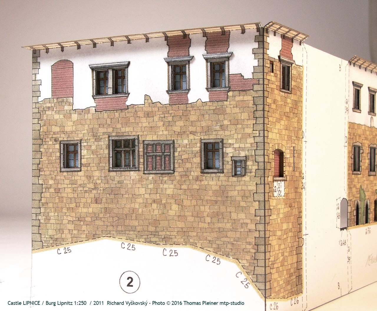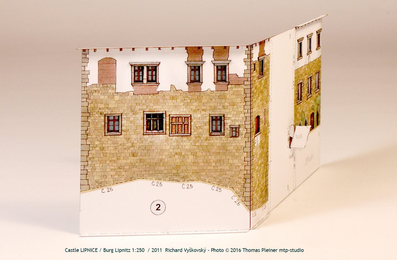 Als eines der äußerst bemerkenswerten Burgenmodelle von Richard Vyškovský darf »LIPNITZ« gelten. Strich und Binnenzeichnung kennzeichnen (auch) dieses Modell als eines der Spätwerke des tschechischen Gestalters & Architekten … was sich hier besonders in der angenehmen und realitätsnahen Farbgebung zeigt.