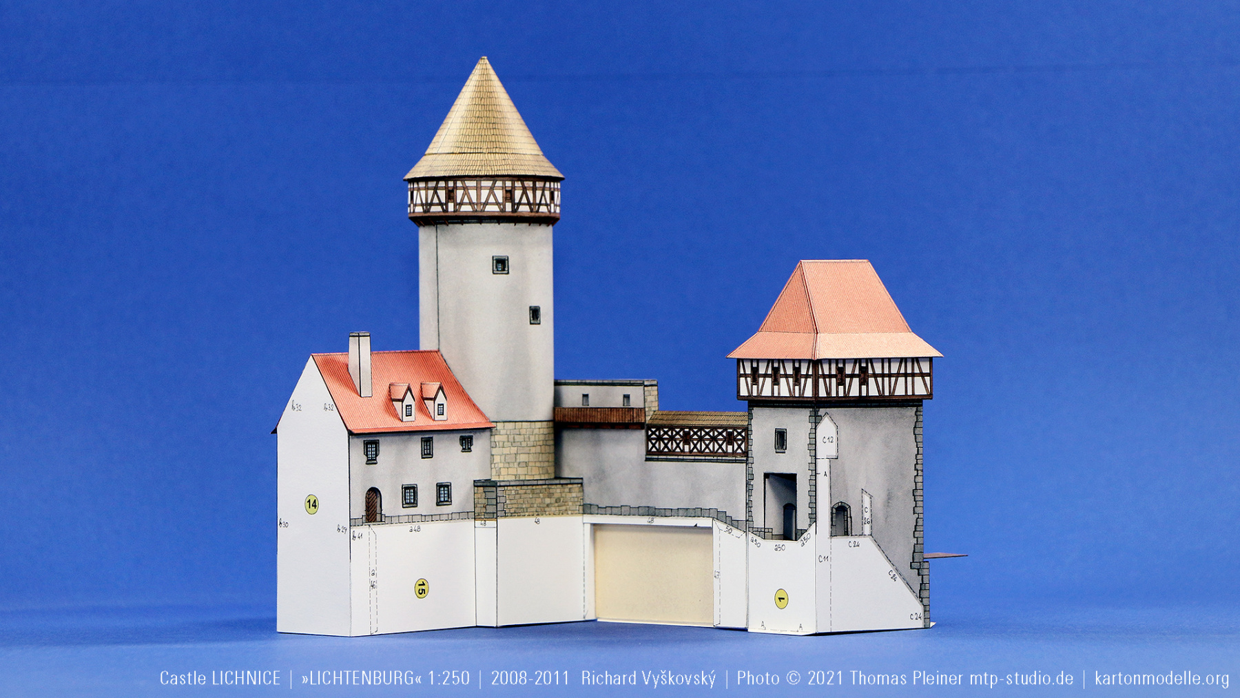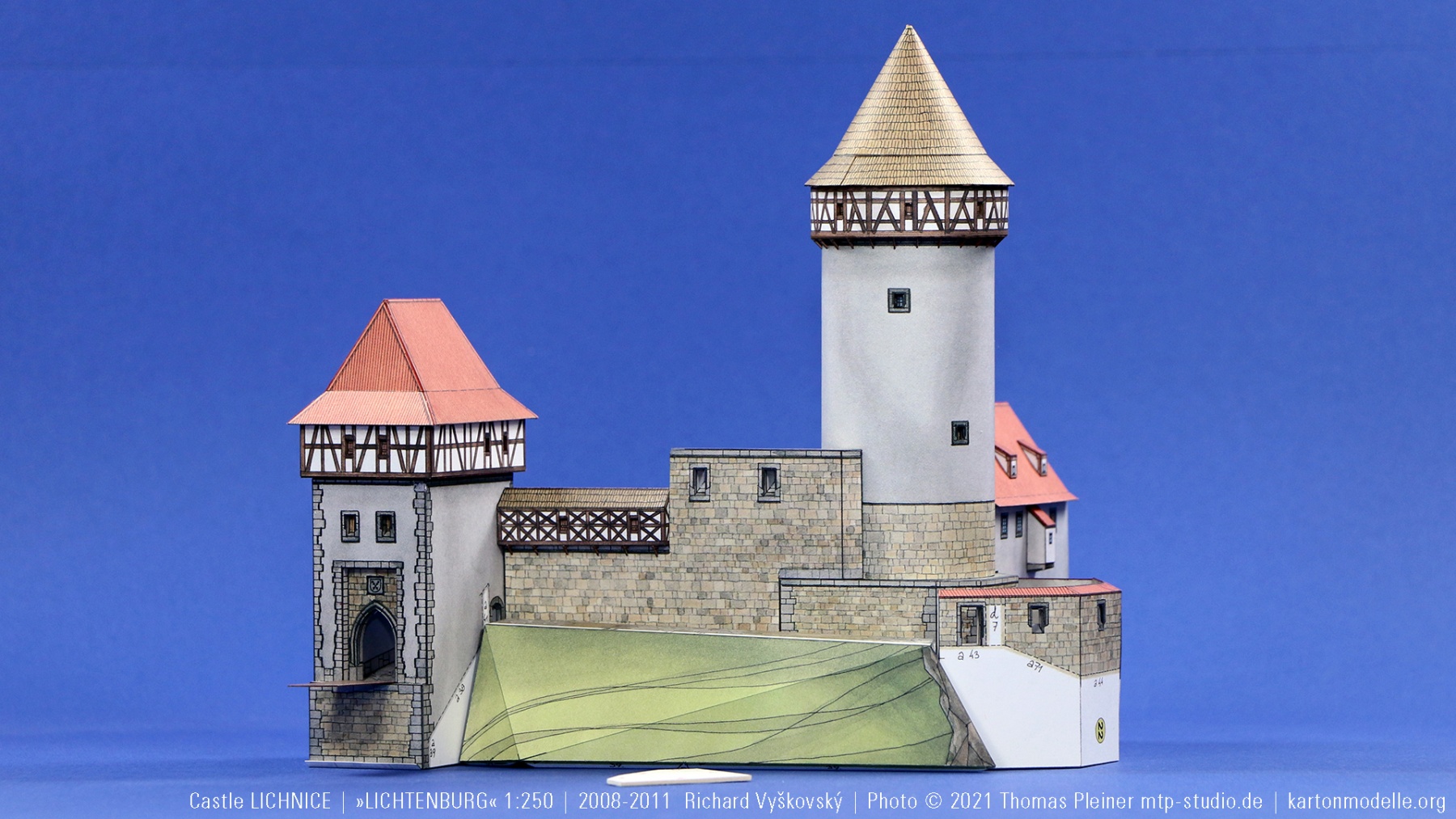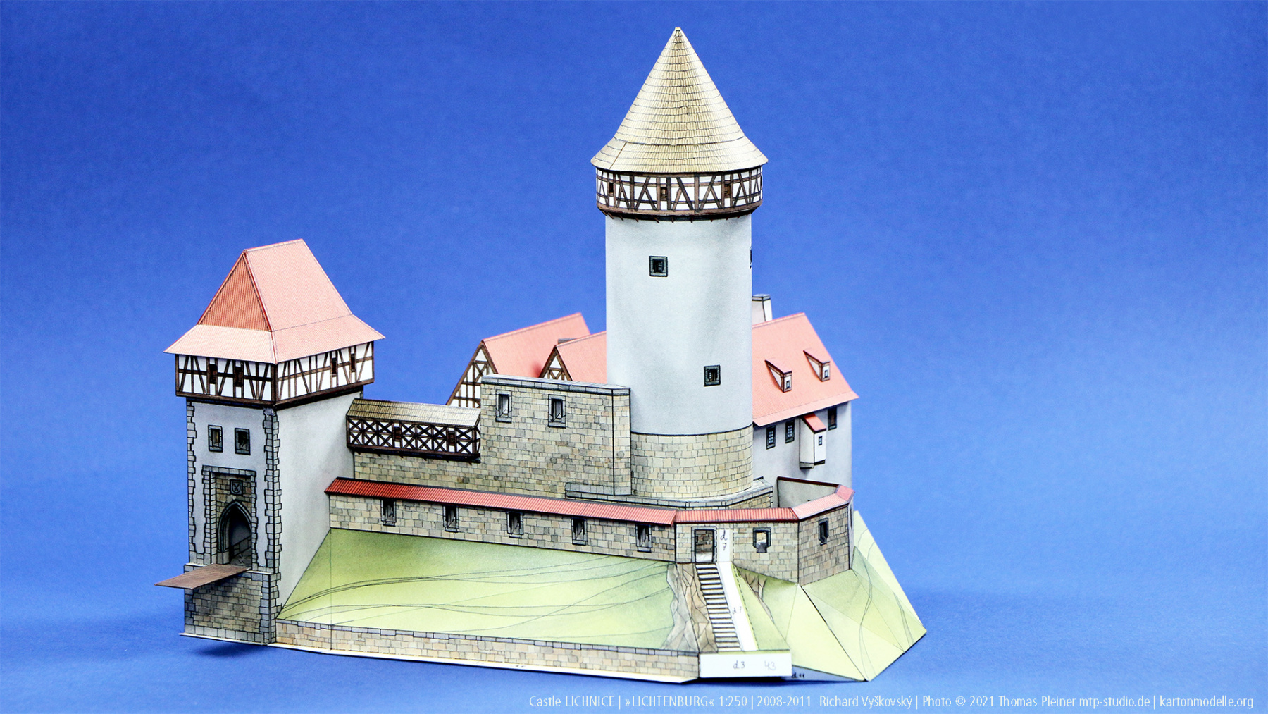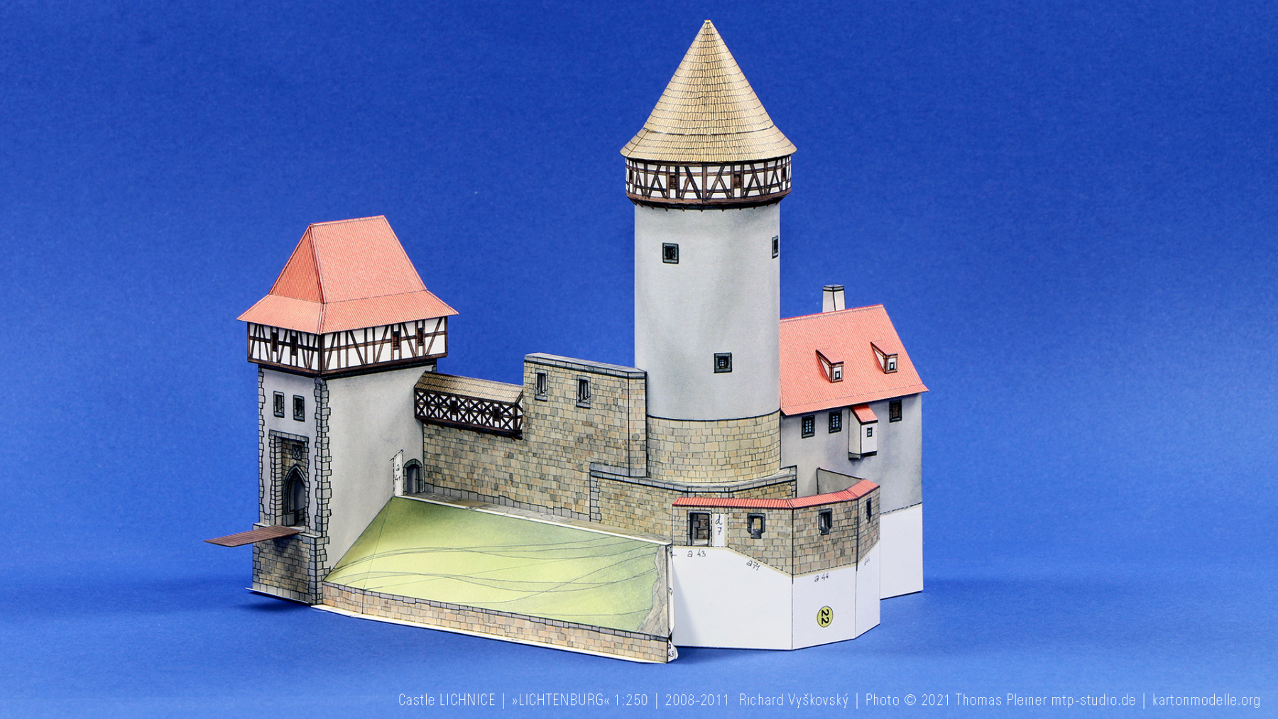 wie bei der Anmoderation von »Burg LIPNITZ (Hrad Lipnice)« (CLICK) erwähnt, ist bei den Modellbogen von Richard Vyškovský anzumerken, dass es sich nicht immer um die Abbildungen der Realiät handelt – sondern auch oft um Rekonstruktionen früherer Bauzustände.