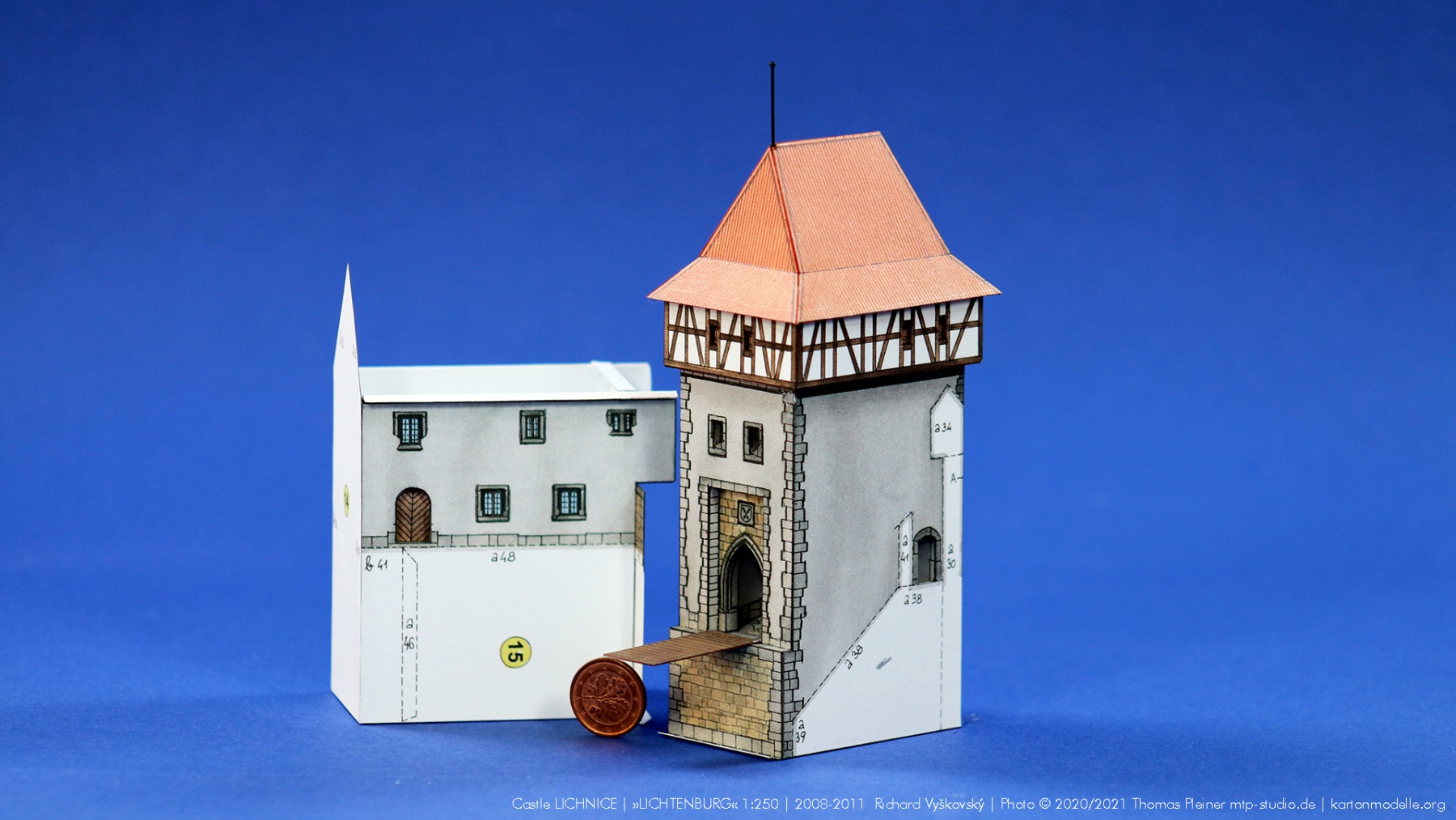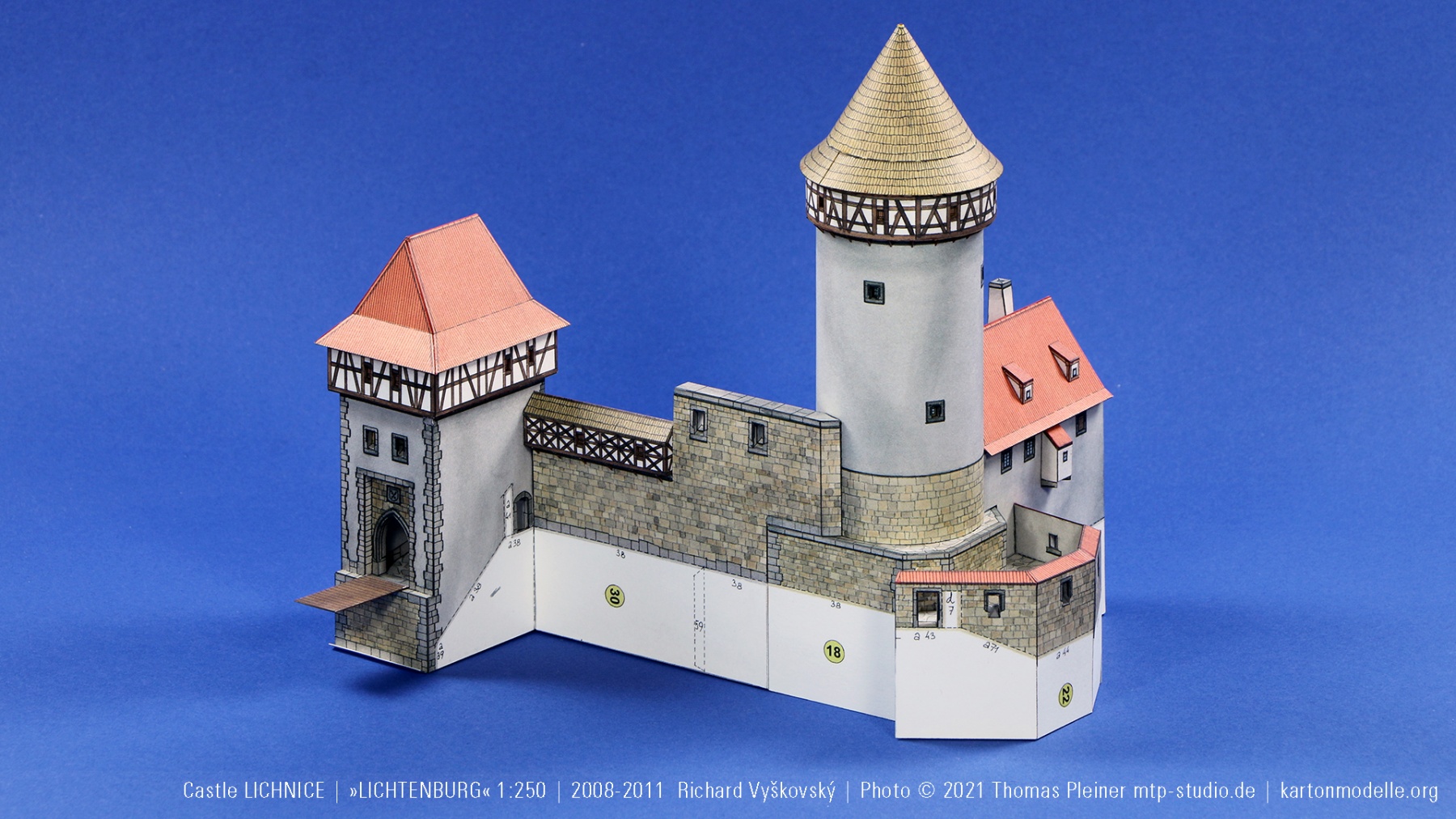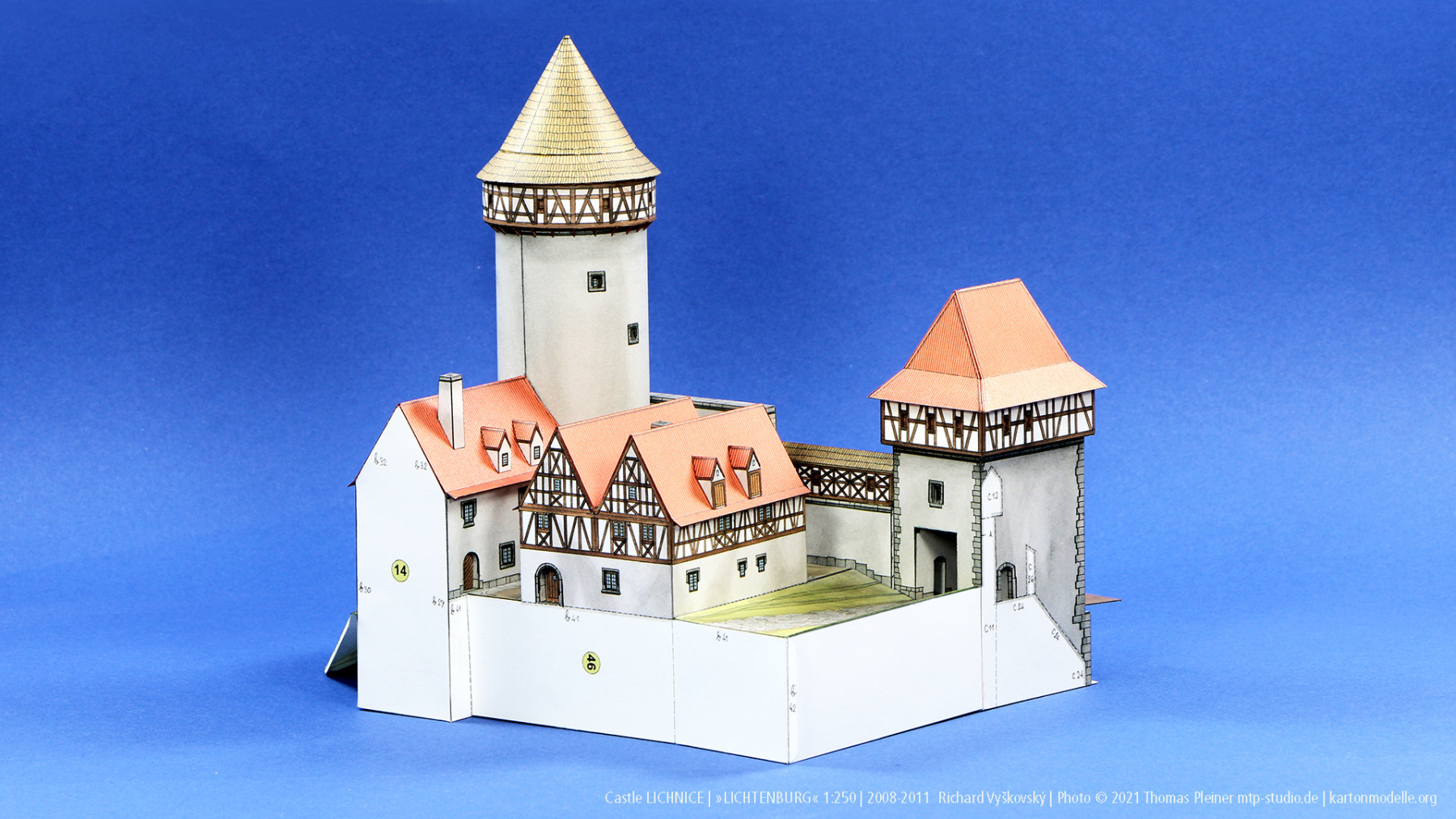 wie bei der Anmoderation von »Burg LIPNITZ (Hrad Lipnice)« (CLICK) erwähnt, ist bei den Modellbogen von Richard Vyškovský anzumerken, dass es sich nicht immer um die Abbildungen der Realiät handelt – sondern auch oft um Rekonstruktionen früherer Bauzustände.