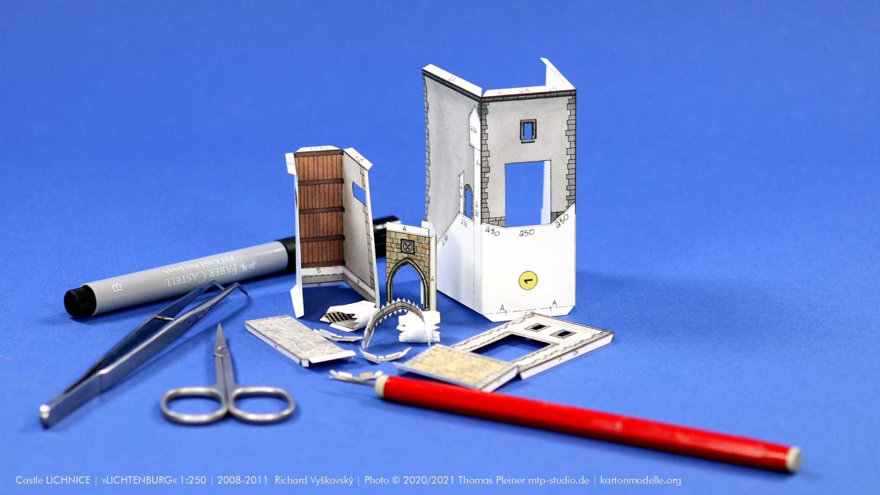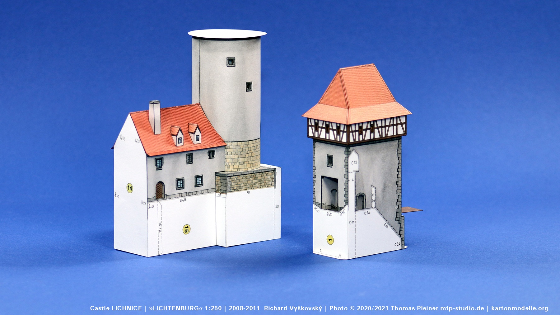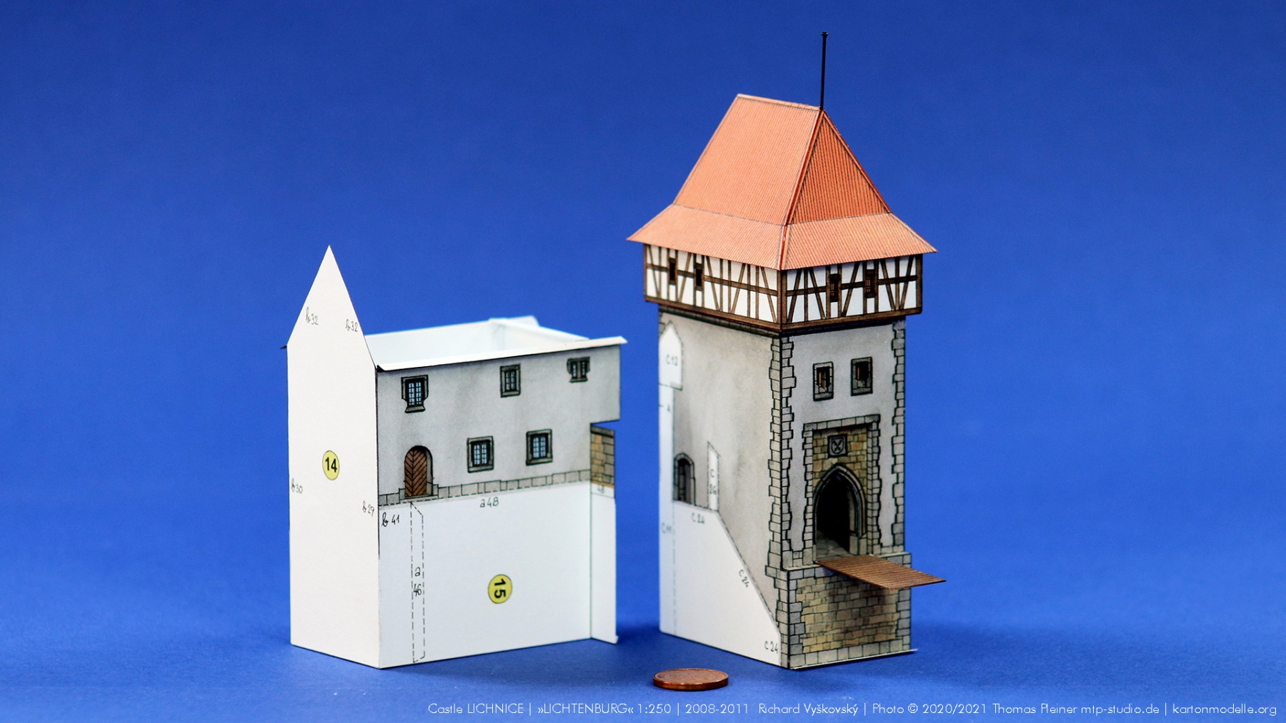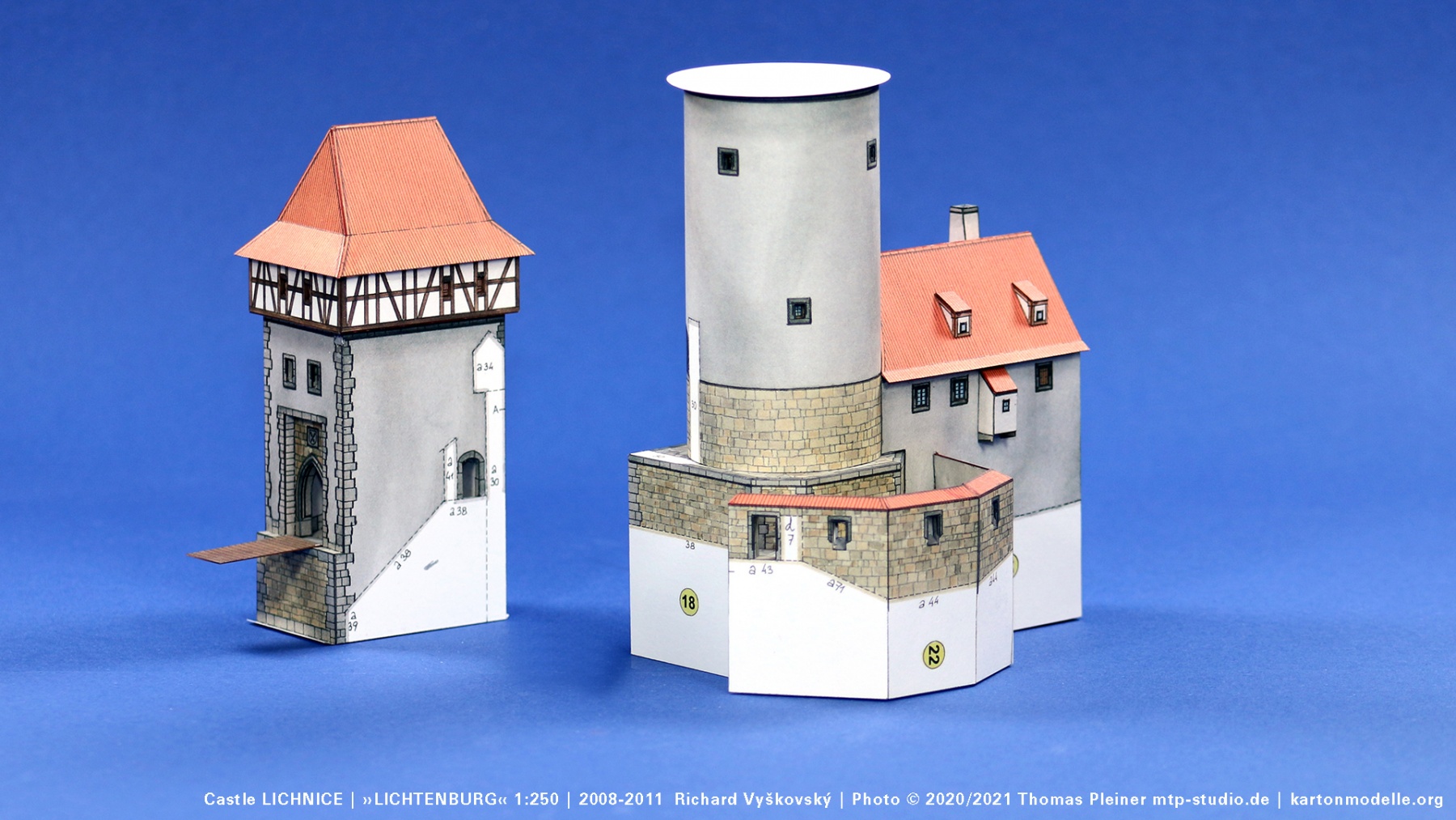 wie bei der Anmoderation von »Burg LIPNITZ (Hrad Lipnice)« (CLICK) erwähnt, ist bei den Modellbogen von Richard Vyškovský anzumerken, dass es sich nicht immer um die Abbildungen der Realiät handelt – sondern auch oft um Rekonstruktionen früherer Bauzustände.