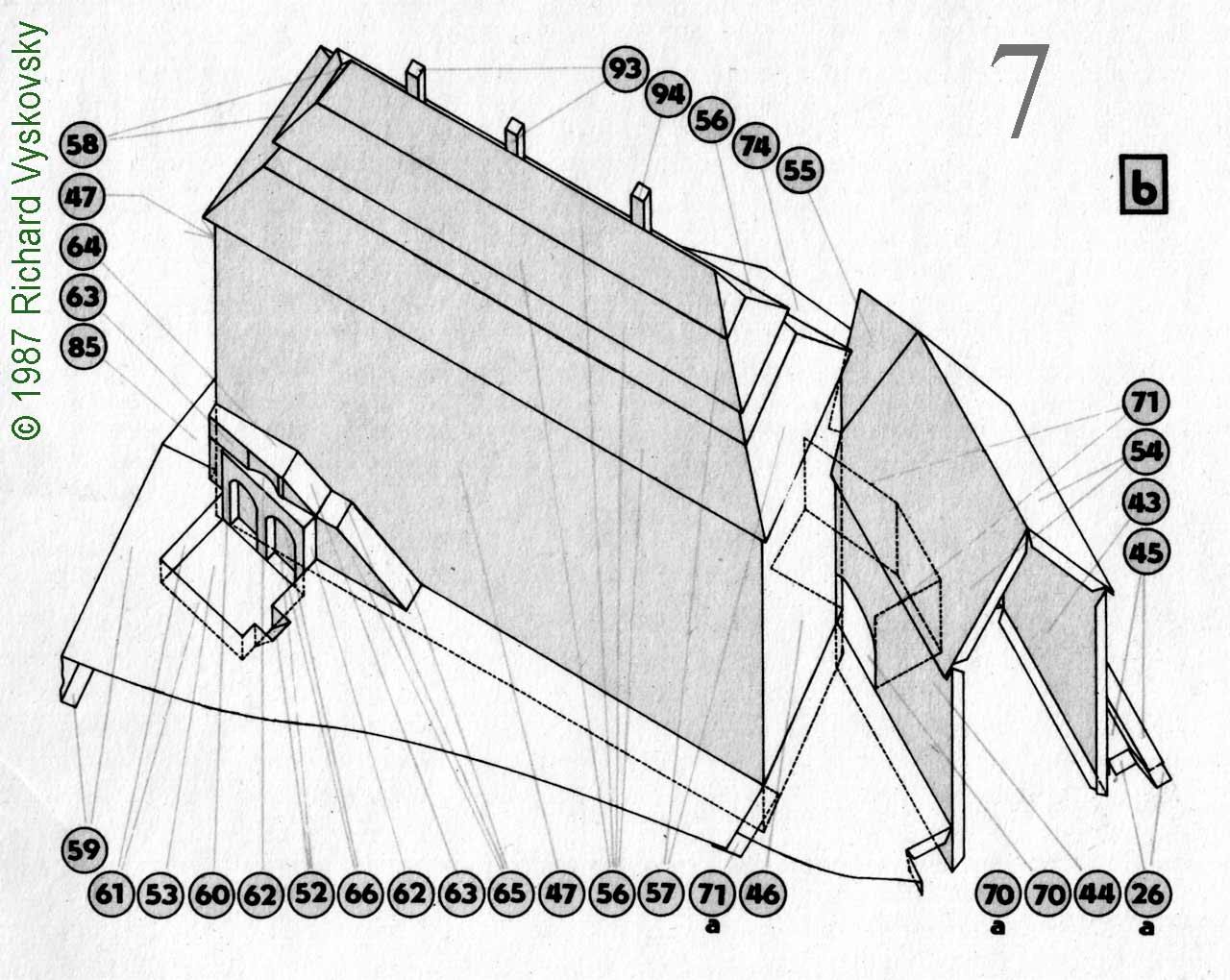 Wie wohl bereits aufgefallen ist, verzichtet Richard Vysjkovsky bei diesem Modell vollständig auf plastisch darstellbare Stürze von Fenster und Türen. Nicht unbedingt ein Nachteil, obwohl ich persönlich mir einen etwas härteren Schatten in der grafischen Umsetzung von Fenster und Türen gewünscht hätte . . .