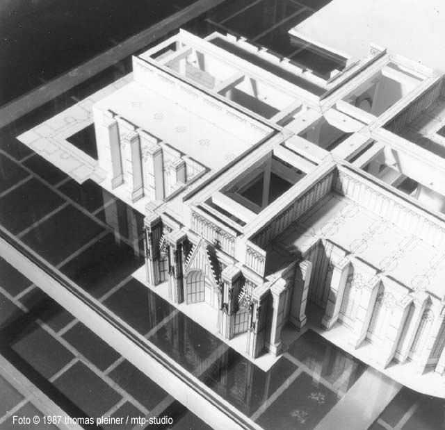 Am 31.5.1988 konnten nach achtzehnmonatigerArbeit die letzten Druckunterlagen übergeben werden. Die auf 21 gestiegene Bogenzahl war der Grund, das Modell als eine Art »Buch« zu konfektionieren. Als „Extra“ gibt’s eine historisch nachempfundene Zeichnung mit Details des Domes, auf deren Rückseite sind als Unterstützung für den Modellbauer alle Grundrisse abgedruckt. Sämtliche perspektivischen Montagezeichungen ermöglichen einen problemlosen Zusammenbau des Modells – allerdings sind 751 Teile kein Pappenstiel, daher ist auch eine Schritt-für-Schritt Bauanleitung erhältlich, die ich in privater Initiative seit 1989 anbiete.