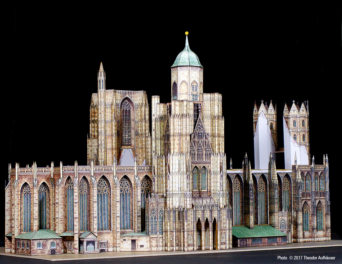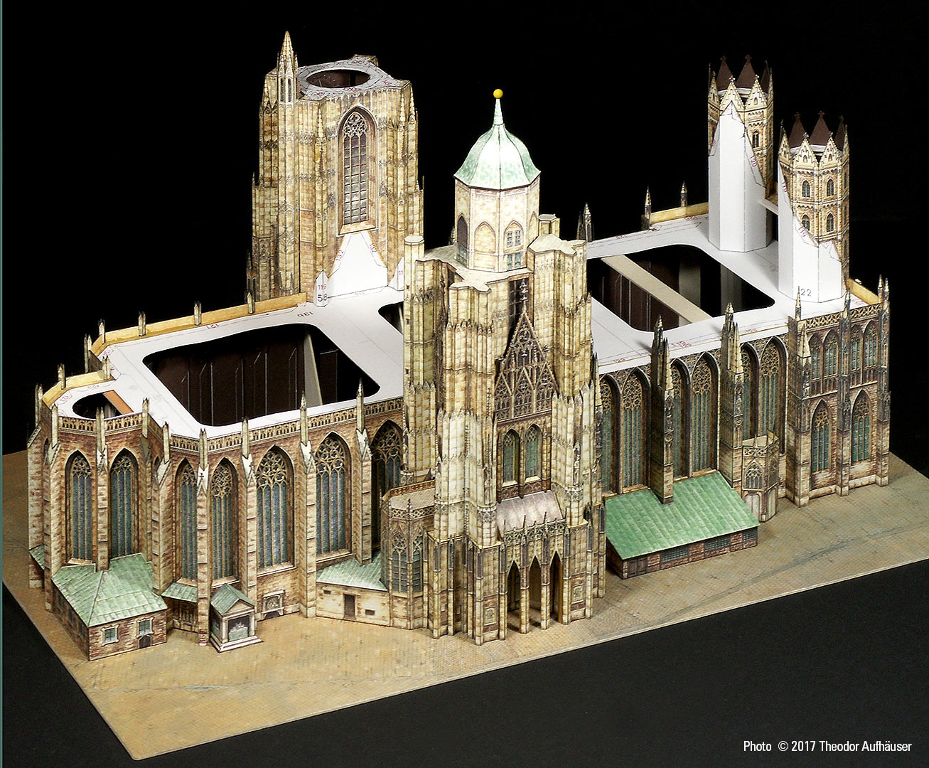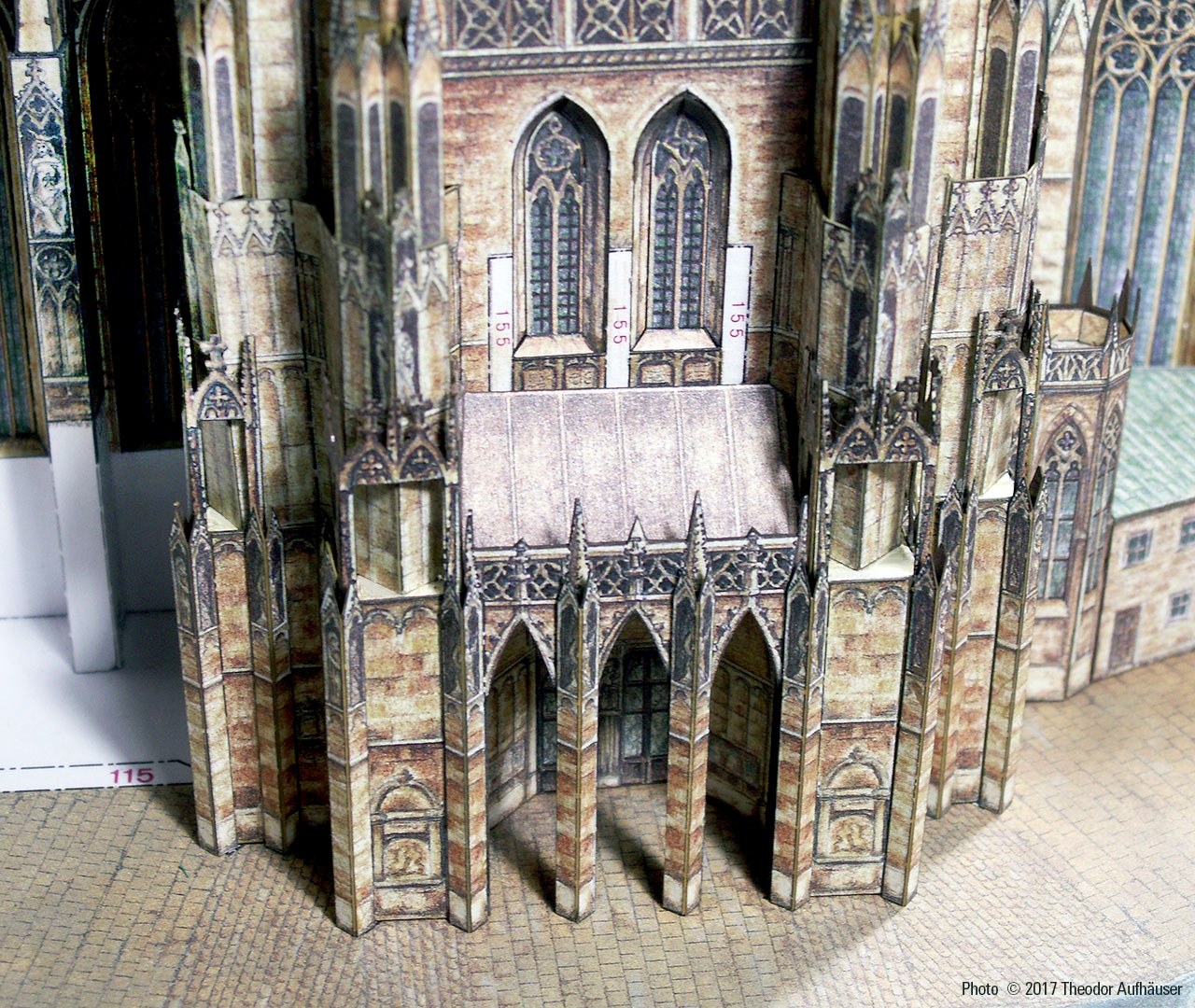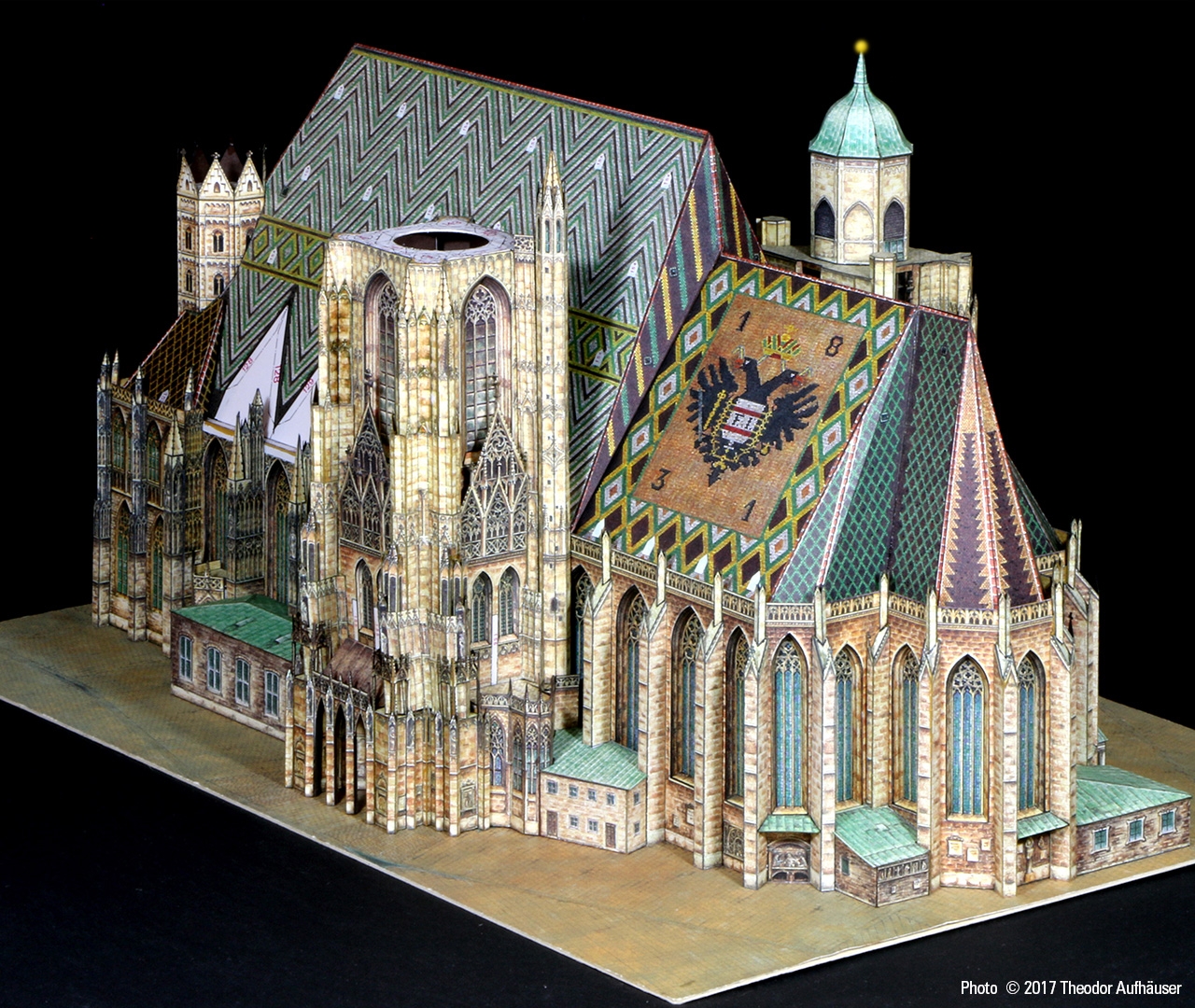 Ein guter Kompromiss die Detaillierung und Baubarkeit betreffend und die Binnenzeichnung wird dem Wiener Wahrzeichen in jeder Hinsicht gerecht. Begrüßenswert: Die Konstruktion ist keine digitale Arbeit und die Binnenzeichnung ist KEINE fotorealistische Umsetzung sondern eine brillante manuelle Grafik … minimale kleinste grafische Schwächen sind bauwerkbedingt (Für Darstellungen kleinster Kreuzblumen in 1:300 finden sich schwerlich zeichnerische Kompromisse).